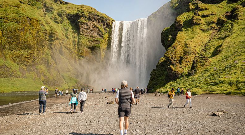 Start the day with a scenic drive to one of Europe’s largest ice caps – the mighty Solheimajokull Glacier. Then, visit the Seljalandsfoss Waterfall and take a walk behind its cascade for a different perspective. Continue chasing waterfalls at the powerful Skogafoss – one of Iceland's biggest falls at 25 m wide with a drop of 60 m. From here, embark on a short hike to Kvernufoss Waterfall, hidden in a nearby valley. These falls are framed by moss-coated cliffs of lava rock, adding to their otherworldly appearance. This evening, you’ll enjoy a comforting dinner at your accommodation – if you’re travelling during the time of the midnight sun, why not go out for a late walk and experience the surreal phenomenon of sunshine at night?