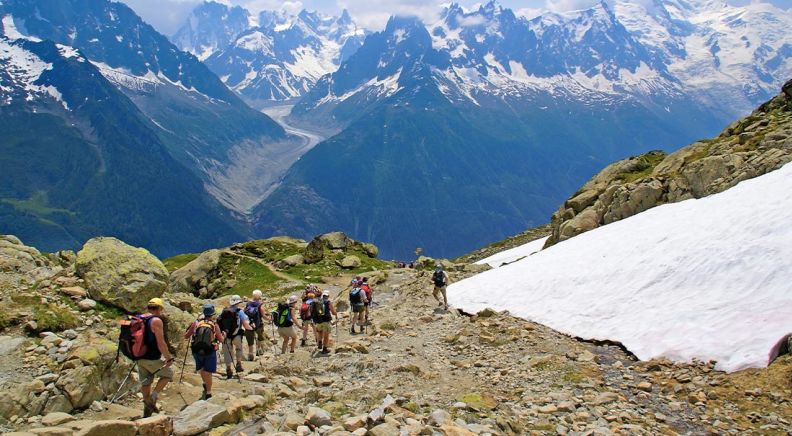 Your hike today will lead you from Chamonix to Mer de Glace – France’s largest glacier. Lying above the Chamonix valley, this sprawling stretch of ice is one of the region’s most impressive sights. Walk uphill through dense patches of forest, taking in fantastic views of the valley and the surrounding peaks. After reaching the glacier, you have the option to continue a downhill loop back to Chamonix, or you may prefer to take the Montenvers train for a shorter scenic trip back.