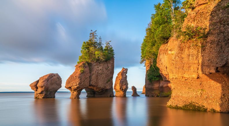 This morning, make your way to the postcard-perfect Hopewell Rocks Provincial Park. Upon arrival join a naturalist guide for a walk right out onto the sea floor (tide permitting) and get up close to the towering sandstone formations known as the Hopewell Rocks, or Flowerpot Rocks. When the tide comes in, waters in the bay can reach up to 16 m, making it the highest tides in the world. In the afternoon, take a quick detour to spectacular Cap Enrage with its charming lighthouse before continuing on through Fundy National Park. Tonight, you’ll stay in the historic seaport city of Saint John. When you arrive, head out for dinner with your group and cheers to an awesome adventure!