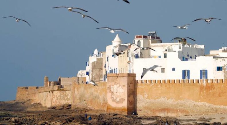 Marrakech - Essaouira. Leaving Marrakech this morning, you'll travel for 2.5 hours across the plains surrounding Marrakech to the argan orchards and scrub maquis-type vegetation around Essaouira. The colourful fishing town of Essaouira is perfect for some beachside fun and relaxation. Spend the afternoon exploring the charming medina or simply lazing on the beach.