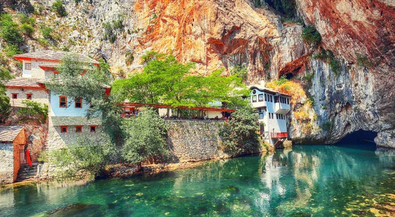 Spend the day exploring the nature, history and flavours of the Herzegovina region – the southern part of the country. Stop at Blagaj Tekke – a dervish monastery perched above the Buna River at the base of a towering cliff. Explore the sacred site and museum, wandering through Ottoman architecture and colourful rooms. Next, stop in Stolac and pop into Mehmedbasica Kuca (a historic house) where a local family preserves the tradition of making smokvara (a traditional fig cake) – try a slice yourself! You’ll then embark on a short hike to Kravica Waterfall near the city of Ljubuski. When you arrive, maybe relax with a dip in the waterfall and soak up the nature surrounding you before heading back into town for the night.