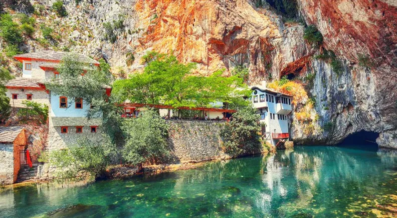Spend the day exploring the nature, history and treats of the Herzegovina region – the southern part of the country. Stop at Blagaj Tekke – a dervish monastery perched above the Buna River at the base of a towering cliff. Explore the sacred site and museum, wandering through Ottoman architecture and colourful rooms. Next, stop in Stolac and pop into Mehmedbasica Kuca (a historic house) for a slice of smokvara (traditional fig cake) before embarking on a short hike to Kravica Waterfall. When you arrive, maybe relax with a dip in the waterfall before heading back into town for the night.
