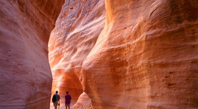 After breakfast, head out for the first trek of your adventure. Journey to the Dana Biosphere Reserve – the largest nature reserve in Jordan. Covering 320 square km, the reserve is made up of mountains, Wadis and sand dunes, and is home to an incredibly diverse display of flora and fauna. The reserve was created to protect the natural environment while generating jobs for the local community. Your trek today takes you in and around this protected area, exploring with the expertise of a local guide. Keep an eye out for the varied wildlife, like falcons, chameleons, foxes, porcupines and more than 700 species of plants. After your trek, transfer to Little Petra. Believed by archaeologists to have housed visiting traders on the Silk Road, Little Petra is every bit as fascinating as its larger counterpart (just a lot quieter!). Take some time to explore the site with your local leader this afternoon, then settle in at your camp for dinner and stargazing.