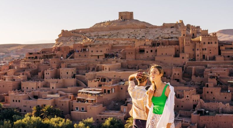 Today, continue your journey south as the rocky desert plateaus give way to a sea of sandy hills at Erg Chebbi. These golden dunes are constantly shifting under North African winds and can reach up to 180 m tall, which makes for incredible views and lots of opportunity for adventure. Walk to your desert campsite for the night, where you’ll be greeted with hot mint tea. Hop on your camel for a ride during sunset and watch the sun go down over the dunes. Tonight, embrace your surroundings while you tuck into a traditional feast prepared by your hosts. Head out on an evening desert walk with the group and keep your eyes up for a truly spectacular night sky. Back at camp, enjoy live Gnaoua music around an open fire before snuggling in for the night.