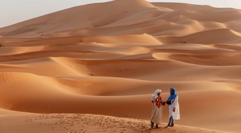 After breakfast, take a hike through the shaded palms of the Todra Valley for a couple of hours, taking in the picturesque scenery of the gorge ahead. Be rewarded at the end of your adventure with a home-cooked lunch served in the backyard of a local family. You'll be treated to dates, nuts, tea and a delicious meal to refuel after your walk. Then, make your way to the Sahara. After a few hours of transit, get ready for a once-in-a-lifetime experience in a sun-kissed desert. The mode of transport? Camel, of course! Brace yourself for one heck of a sunset while you wind through the vast expanse of sand and loop back to your private camp for an overnight stay in the middle of the sandy dunes. In the camp, you'll have a thin mattress, blankets and sheets (and an auberge not so far away, just in case). Ensure you bring a sleeping sheet and warm jumper if it's winter (you'd be surprised how cold it can get). Sit under a blanket of stars tonight and have a mind-blowing 'I am so far from home' kind of moment.