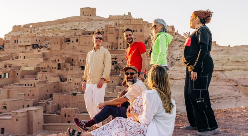 This morning after breakfast, you’ll drive to Ait Benhaddou. Sitting on a hilltop and almost unchanged since the 11th century, this is one of Morocco's most iconic sites. If you think you recognise the place, you probably do, as the town has a long list of film and TV credits, including Lawrence of Arabia, Game of Thrones and Gladiator. Enjoy a walk through the winding streets of the Old Town and ksar, making your way to the top of the hill, from where you can enjoy views of the surrounding plains. Then, join a local artist for a painting workshop. You’ll create your own image of the iconic view of the ksar. Visit the Tawesna teahouse – a community-run establishment that provides local women an income to support themselves and their children. Using ingredients sourced from local cooperatives, the women prepare mint tea and pastries while sharing their stories with those who pop in. After heading to your hotel for the night, maybe sit back on the rooftop terrace and watch the sun setting over the kasbah before a group dinner.