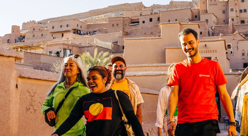 Salaam Alaikum! Welcome to Morocco. You’ll kick off your Short Break Adventure at 8 am in Marrakech this morning. Meet at your joining point before setting off in a comfortable, air-conditioned vehicle with the rest of your group, your driver and your local leader. Head out of the city towards Todra Valley in the foothills of the Atlas Mountains. Along the way, stop at Ait Benhaddou – this UNESCO World Heritage site was once an important stop for salt caravans crossing the Sahara. Take a walk through the winding streets of the Old Town and visit the Tawesna Teahouse on the river – a community-run establishment that provides local women with an income to support themselves and their children. Using ingredients sourced from local cooperatives, the women prepare delicious tea and pastries while sharing their stories. After, carry on to the Todra area, where you might want to take a refreshing dip in the hotel pool.