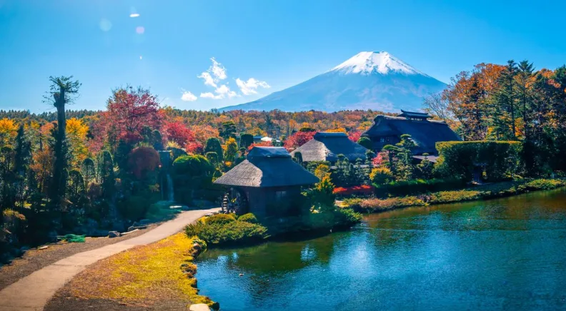 After breakfast, travel to Oshino Hakkai Village – a small village in the Fuji Five Lake region, named after its eight crystal-clear spring-fed ponds. When you arrive, be greeted with a welcome ceremony, then head to your Minshuku accommodation (Japanese guesthouse). Later, walk to a nearby local temple for a Japanese Buddhism experience of meditation and calligraphy painting. For dinner, you and your family will learn how to cook Hoto noodles (a rustic noodle soup made with flat, wide wheat noodles simmered in a miso-based broth) and onigiri rice balls.