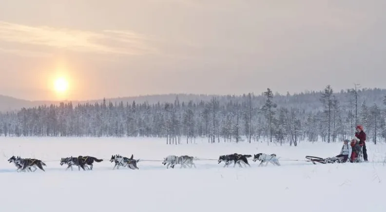 Consider embarking on a dog sledding adventure. An experienced instructor will guide you through the basics of dog sledding. Once the dogs are all set, it's time to hit the trail, with your guide leading the way through the picturesque forest. Upon your return to the camp, you'll be treated to hot drinks and sandwiches in a cozy barbecue hut.