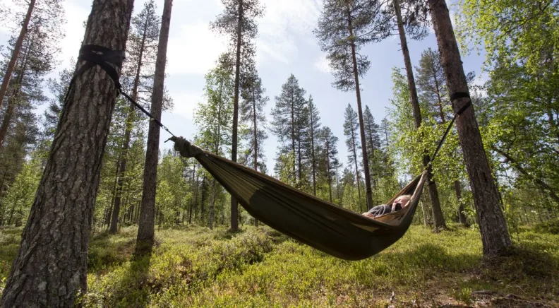 This morning, travel to Halipuu Forest. When you arrive, meet the family that owns the land and hear about their efforts to spread awareness of nature conservation and how they work to save trees from being cut down. Hug a few trees (as the locals do) before being wrapped in a hammock for a Finnish experience of arctic cocooning. After, sit down for a warm cup of hot chocolate and a lunch around the fire of lapp-dogs (reindeer sausages wrapped in bread dough, roasted on the campfire). Later, travel to Rovaniemi, where you’ll stay for the next two nights.