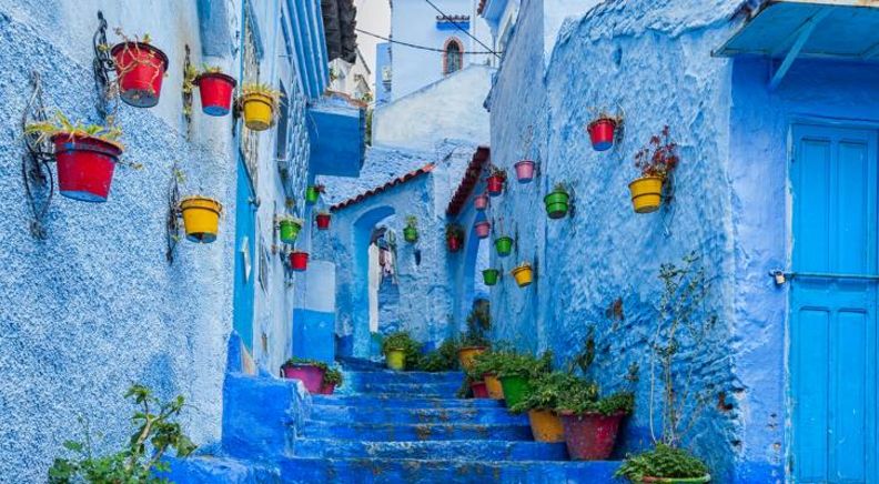 Tangier - Chefchaouen. This morning, continue your journey through the stunning landscapes of the Rif Mountains to the enchanting Blue Town of Chefchaouen. Known for its "bluewashed" streets and alleyways, Chefchaouen is one of the most photogenic towns in Morocco, offering endless opportunities for exploration.