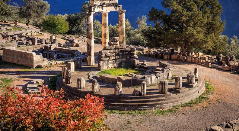 Delphi: With your Local Specialist, walk to The Sacred Way once lined with offertory temples. See the reconstructed Athenian Treasury and pass the superb Polygonal Wall to reach the Temple of Apollo, where people once sought divine wisdom from the mysterious Oracle.