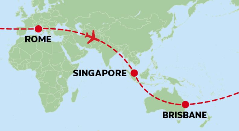 Round the World Economy Class airfare stopping in Dallas Fort Worth, Rome & Singapore