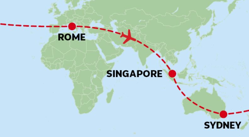 Round the World Economy Class airfare stopping in Dallas Fort Worth, Rome & Singapore