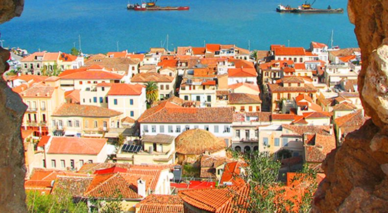 Westwards! Today we’ve got the handsome coastal city of Nafplio in our sights. Once back on the mainland, we’ll wind our way through mountainous, vineyard-speckled landscapes – stopping at the striking Corinth Canal as we go. Wedged between sharp cliff faces, this distinctive canal is the narrowest in the world; a streak of blue connecting the two bordering gulfs. Though most modern ships would find it tricky to navigate its 25-metre width! Upon our arrival in Nafplio, take a moment to admire Bourtzi Castle – an atmospheric Venetian fortress floating in the middle of the harbour – before sampling the local fare in a homely tavern.