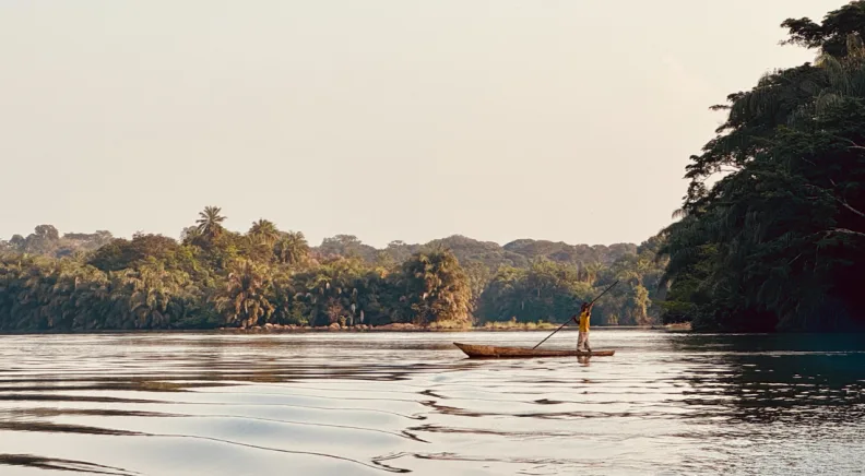 Travel to Tiwai Island, a community-led wildlife sanctuary known as the “Land of the Apes.” The island is home to chimpanzees, colobus monkeys and other species, though sightings are rare due to the impact of past hunting and conflict. What makes Tiwai special is the sense of wilderness: towering trees, dense forest and the feeling of being far removed from the outside world. This afternoon, take in the scenery on a boat cruise along the Moa River before joining a community-led night walk through the forest to experience the island after dark.