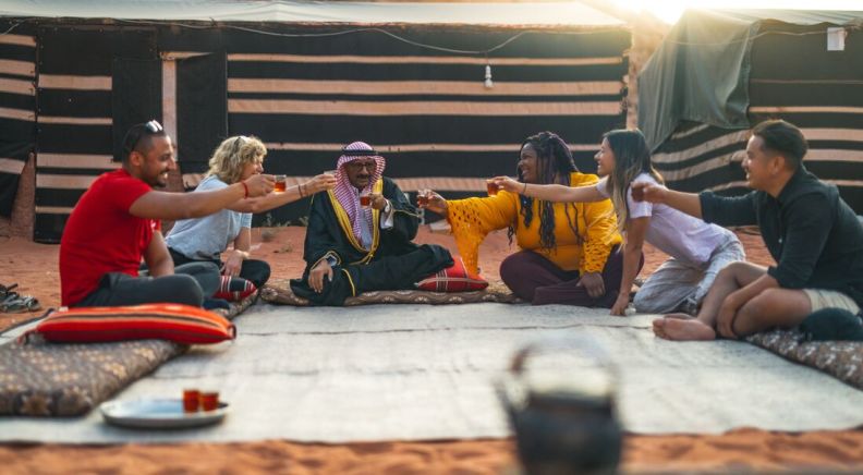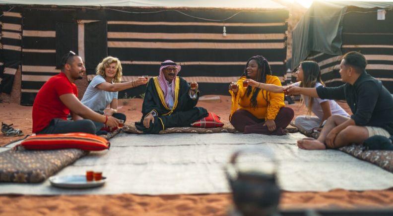 This morning, leave Amman and head to Aqaba – the only coastal city offering a pocket of beach in this otherwise landlocked country. When you arrive, explore the market and walk along the beach on a leader-led walking tour. Visit the Aqaba Marine Reserve and learn about their conservation effort from Jordan's first female ranger at the reserve! Enjoy a couple of hours exploring this city at your own leisure, maybe by snorkelling in the Red Sea, navigating the local markets or simply relaxing by the water. After, continue to the UNESCO World Heritage site of Wadi Rum, arriving in time for dinner, cooked in an earthen oven by your Bedouin hosts. Meaning ‘desert dwellers’ in Arabic, the Bedouins are a semi-nomadic people, and in Jordan up to 40 per cent of the general population is thought to have Bedouin ancestry. This evening, get some shuteye in a simple Bedouin desert camp, either in a camel hair tent or out under the stars.