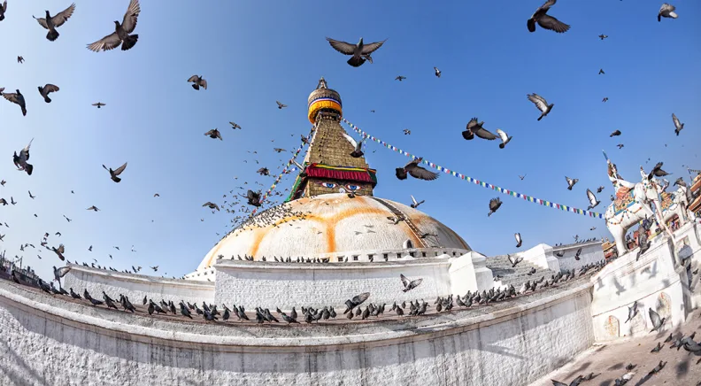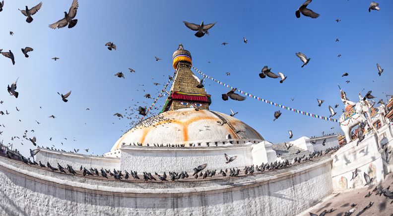 Today you’ll head out to Kathmandu's most important Buddhist shrine – the ancient Swayambhunath Temple, known to tourists as the Monkey Temple. The sleepy, all-seeing Buddha eyes that stare out from the top have become the quintessential symbol of Nepal. You’ll also join the pilgrims at Bodhnath Stupa – the largest stupa in Nepal and one of the holiest Tibetan Buddhist temples. Then, visit Pashupatinath – the most famous Hindu temple in the country – located on the banks of the holy Bagmati River. Here you will see Hindu holy men (sadhus) meditating and pilgrims bathing. The rest of the day is free for you to enjoy Kathmandu. One way to spend your time is to take a scenic flight through the mountains – great if you’re not able to take on a trek.