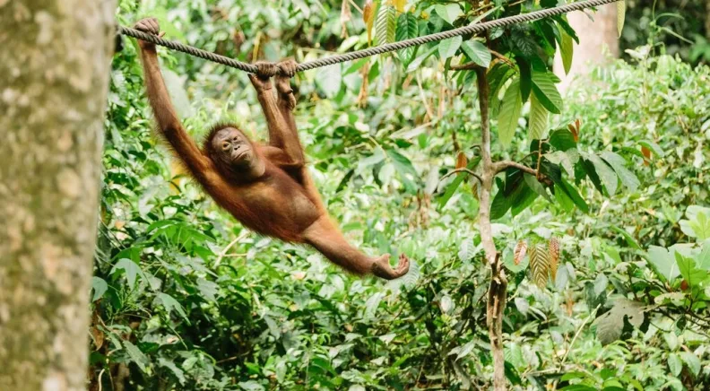 Visit the Sepilok Orangutan Rehabilitation Centre and, if you're lucky, watch baby orangutans learn to swing in a special enclosure.
