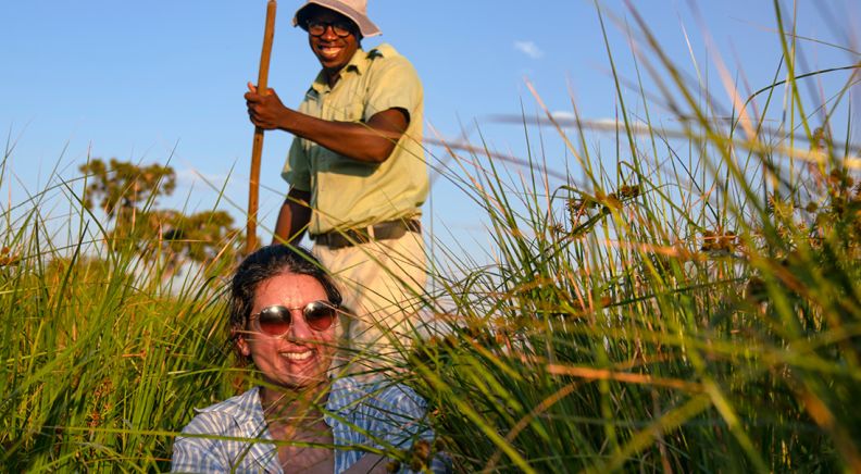 Drive across the border into Botswana and head south along the Okavango Panhandle (the narrowest part of the delta) to Sepopa. Here, you'll leave your vehicle behind as you journey by boat into the delta to your bush camp on an island away from civilisation. Punting along past birds and lily pads, you'll hear hippos occasionally interrupting the peaceful atmosphere with their charming grunts.