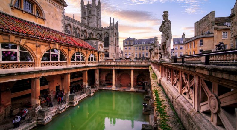 Bath: Admire UNESCO-listed Bath, with its elegant Georgian facades and the bimillennial Roman Baths from which the city takes its name.