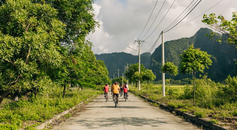 Today is dedicated to exploring the villages and scenic countryside of provincial Vietnam. The journey from Mai Chau to Ninh Binh is easy and leisurely paced. You'll have plenty of opportunities to hop off your bike and take photos of the surrounding valleys, sugarcane farms and rice paddies that compose the landscape. The final stop is the town of Ninh Binh – this scenic province is famous for its limestone karst landscapes, lush rice paddies and gently flowing waterways.