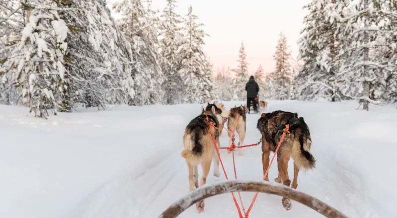 Make sure you wrap up for today’s adventures – you'll be racing across the landscape on the back of a dog sled! These incredible huskies are in their element, barking excitedly before darting along sprawling trails. With the wind in your hair, ride through the snow as your new four-legged friends pull you forward. After the ride, warm up by an open fire and enjoy pulla (a Finnish sweet roll). If you’re lucky, you might even get to give the dogs a pet and a cuddle.