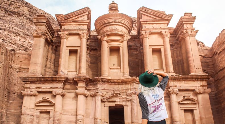 Today, farewell your Bedouin mates and journey to Petra – one of the famed Seven Wonders of the World. You’ll have two full days exploring Petra and its surroundings, so be sure to take your time exploring this archaeological site. Take a guided tour where you’ll learn about its thousands of years of history and the many films that have used this as a backdrop. You'll get to follow in the footsteps of movie stars as you head through the site's narrow siq (a narrow crack in the mountain) to Petra's tombs, temples and rock-hewn amphitheatre. For those wanting to admire the 'rose-red city' from a different angle, there's tonnes of hikes to do in the area - just ask your leader for the best trails to tackle. After a day of exploration, the cave bar is a good place to relieve your parched throat and put your feet up.